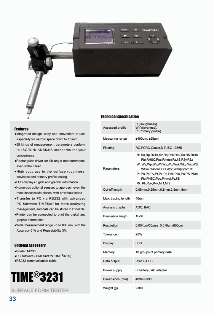 Resolution: 0.001μm/50μm;0.016μm/800μm