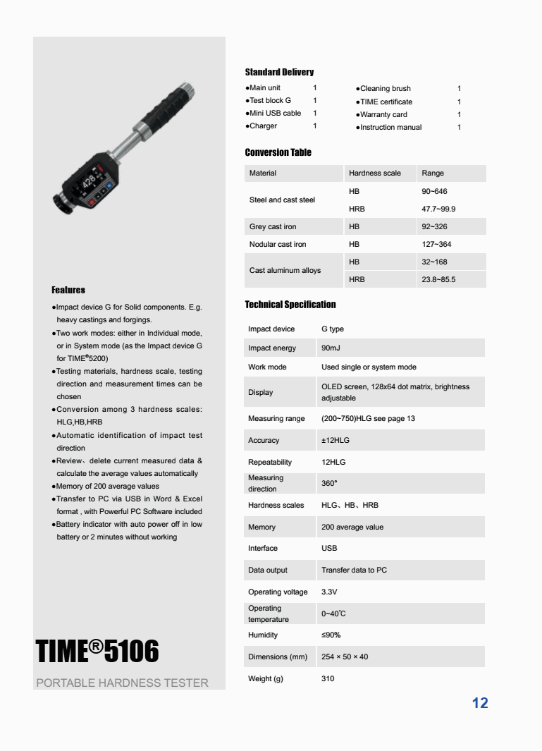 TIME 5106 Portable Hardness Tester (Leeb; Type G)