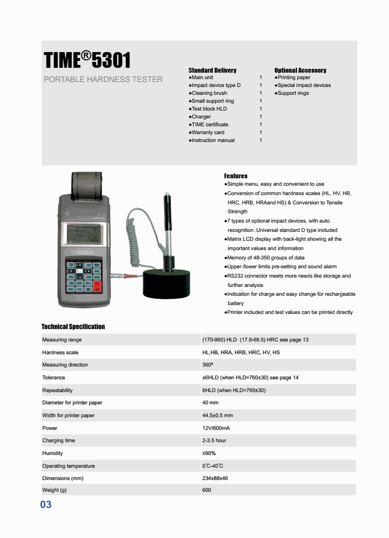 TIME 5301 Portable Hardness Tester (Leeb; type D)