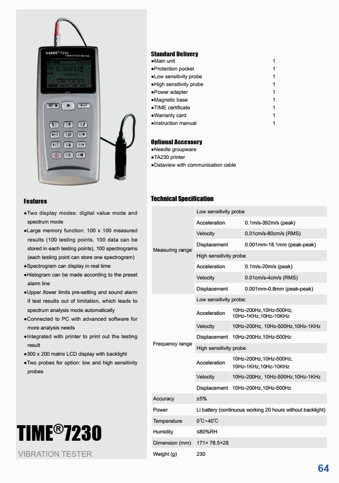 Velocity: 0.01cm/s-80cm/s (RMS)