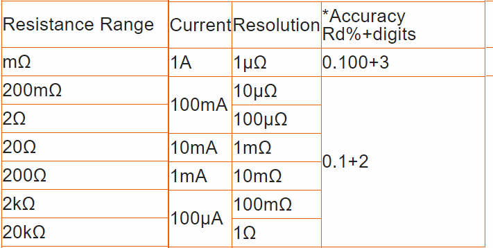 Measurement range: 10μΩ –20kΩ