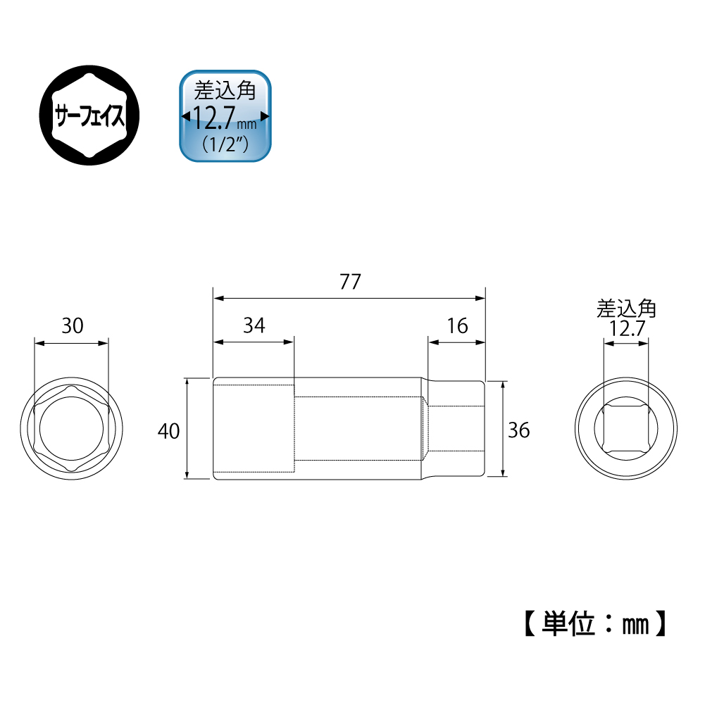 TOP Kogyo DS-430 Surface Deep Socket (1/2", 30mm) | EMIN.COM.MM