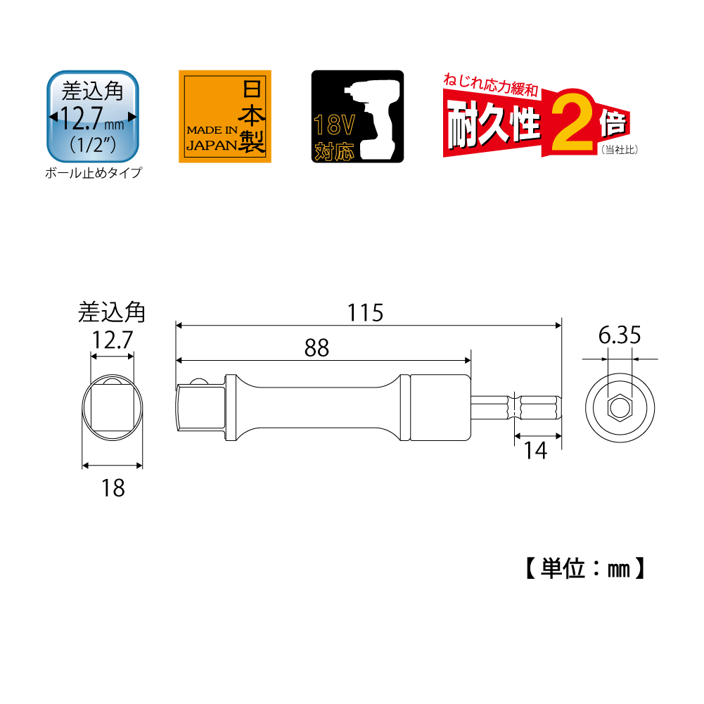 TOP Kogyo ESA-4DXL Alpha Socket Adapter Long Type (1/2", 115mm) | EMIN.COM.MM