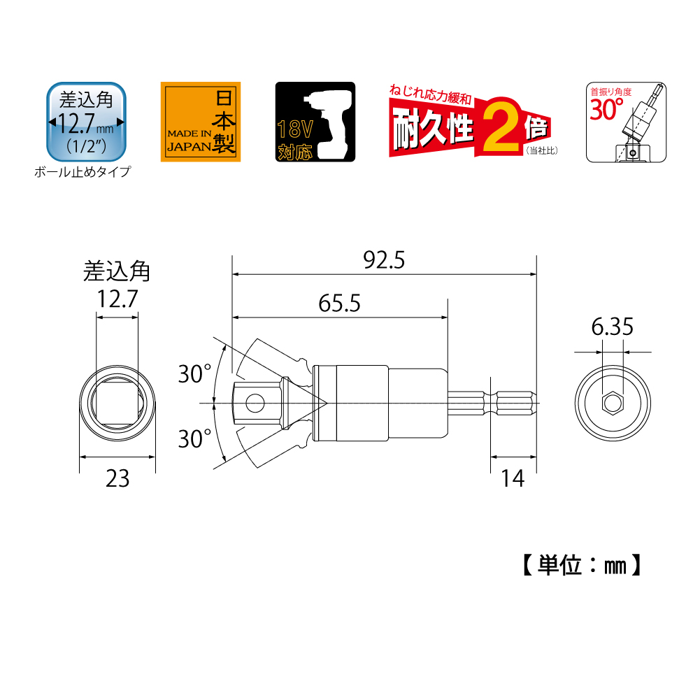 TOP Kogyo EUA-4DX Alpha Universal Socket Bit Adapter (1/4" ~ 1/2", 30 °) | EMIN.COM.MM