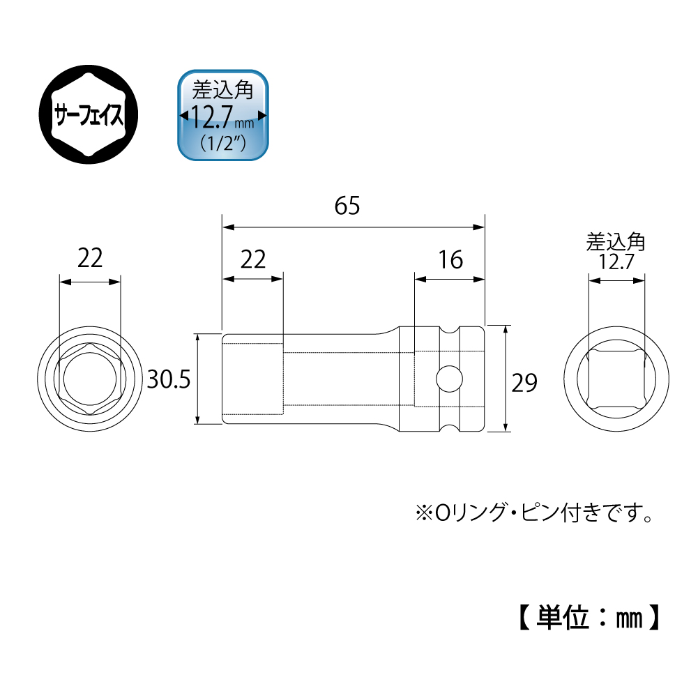 TOP Kogyo PT-422L Impact Deep Socket (1/2'',22mm) | EMIN.COM.MM