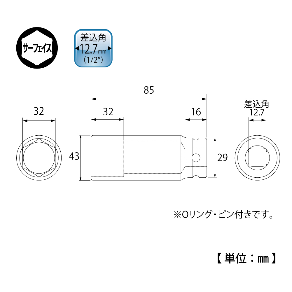 TOP Kogyo PT-432SL Super Long Impact Socket (1/2'', 32mm) | EMIN.COM.MM