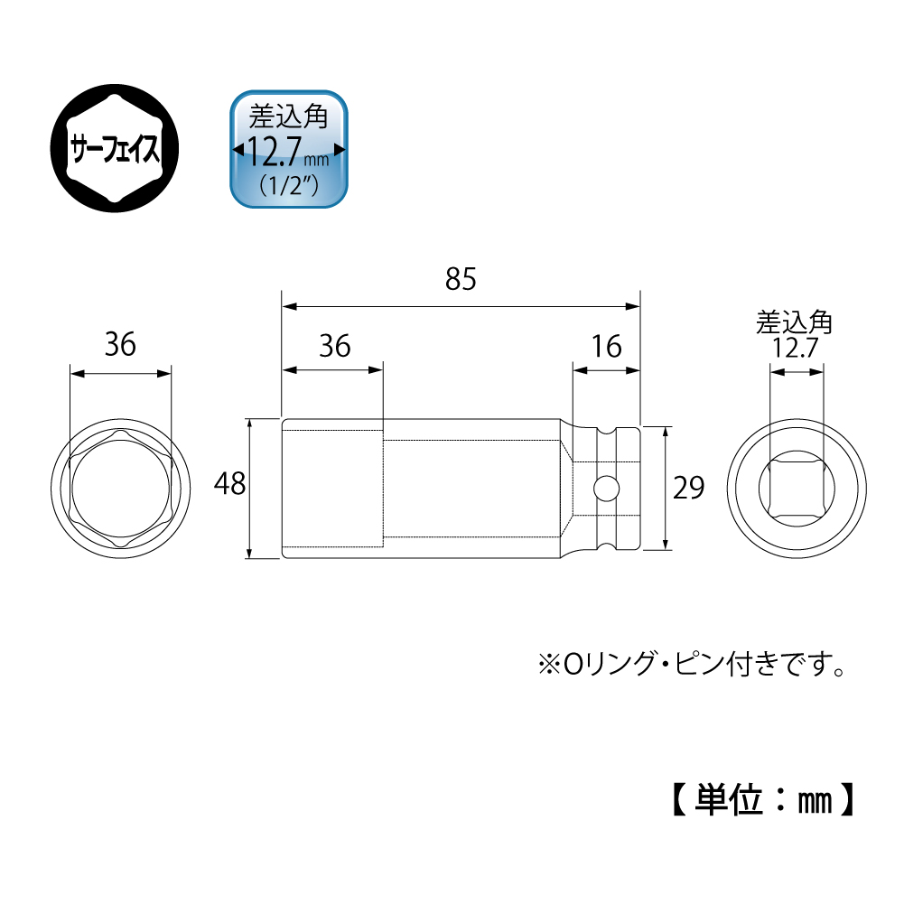 TOP Kogyo PT-436SL Super Long Impact Socket (1/2'', 36mm) | EMIN.COM.MM