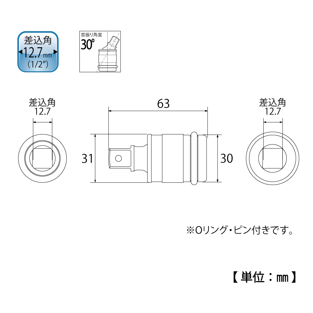 TOP Kogyo PUN-4S Impact Universal Joint (1/2'', 63mm) | EMIN.COM.MM