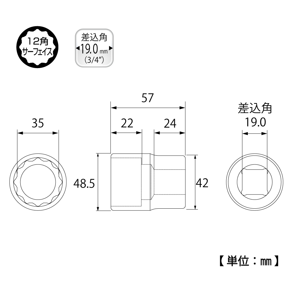 TOP Kogyo S-635 Socket Wrench Socket (3/4", 35mm) | EMIN.COM.MM