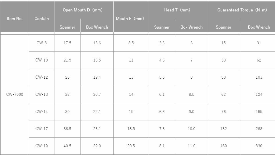 TOP Kogyo CW-7000 Combination Wrench Set (7 pcs/set) | EMIN.COM.MM