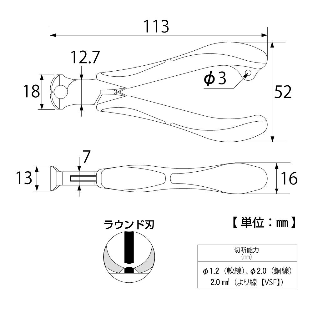 TOP Kogyo EN3-120 3 Layered Diagonal Edge Cutting Pliers (113mm) | EMIN.COM.MM