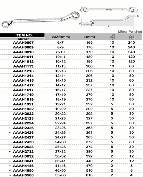 TOPTUL AAAH0607 Double Ring Wrench 45° Offset (6x7 mm) | EMIN.COM.MM