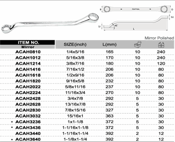 TOPTUL ACAH0810 Double Ring Wrench 45° Offset (1/4x5/16 inch) | EMIN.COM.MM