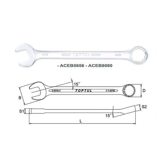 TOPTUL ACEB5656 Standard Combination Wrench Offset - SAE (1-3/4") | EMIN.COM.MM