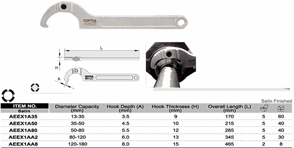 TOPTUL AEEX1A35 Adjustable Hook Spanner Wrench (13~35 mm) | EMIN.COM.MM