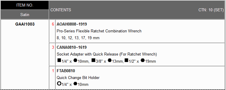 TOPTUL GAAI1003 10PCS Flexible Ratchet Combination Wrench | EMIN.COM.MM