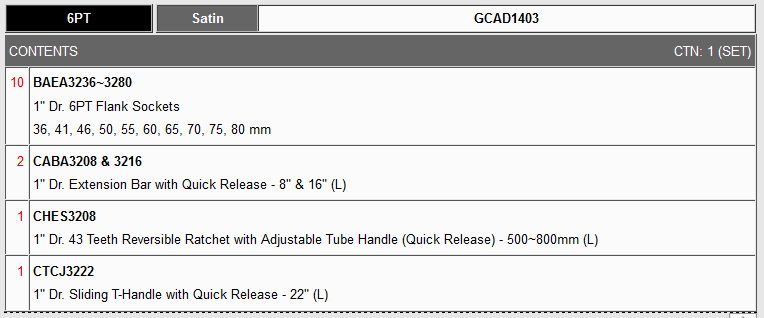 TOPTUL GCAD1403 14PCS Professional Grade 1inch DR. 6PT Flank Socket Set (METRIC) | EMIN.COM.MM