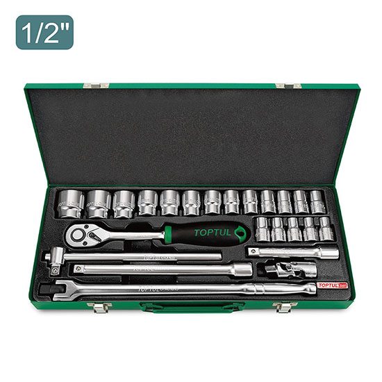 TOPTUL GCAD2403 DR. Socket Set - Satin (1/2", 24 PCS) | EMIN.COM.MM