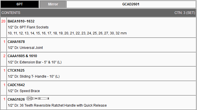 TOPTUL GCAD2601 26PCS 1/2 inch DR. Socket Set - Mirror (1/2"x10~27,30,32mm) | EMIN.COM.MM