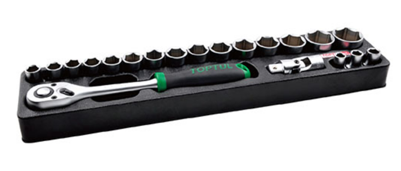 TOPTUL GM-2023 20PCS 1/2" DR. Flank Socket Set (12PT) (20 pcs, 1/2'', 12PT) | EMIN.COM.MM