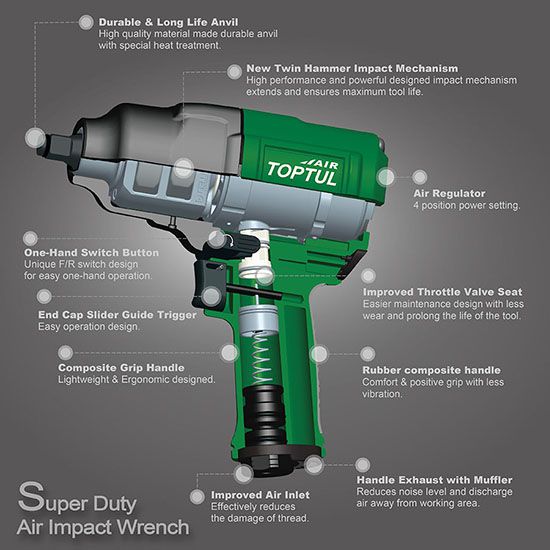 TOPTUL KAAJ1680 Super Duty Air Impact Wrench (1/2", 1085 Nm) | EMIN.COM.MM