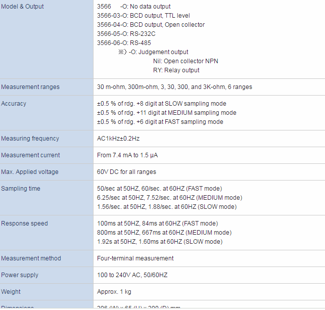 Measurement ranges 30 m-ohm, 300m-ohm, 3, 30, 300, and 3K-ohm, 6 ranges