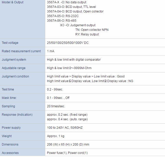 Adjustable range High & low limit 0~9999M-Ohm