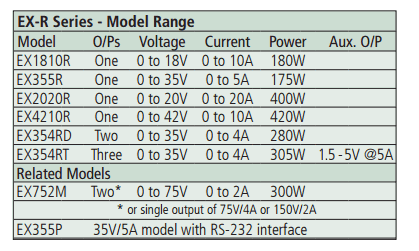 EX752M 2 x (0 to >75V; 0 to >2A) (300W nominal power)