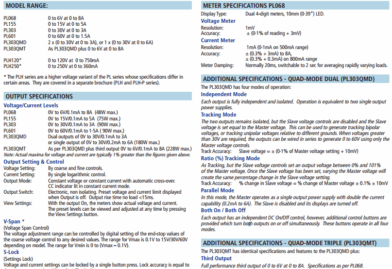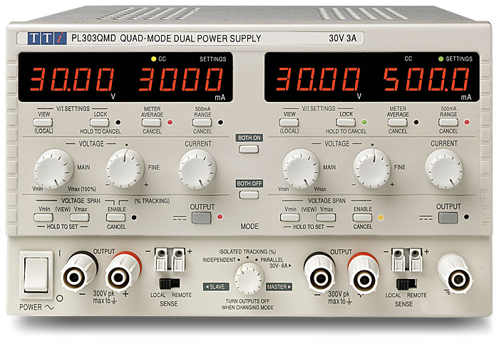 PL303QMD-P 2 x (0 to 30V at 0 to 3A), or 1 x (0 to 30V at 0 to 6A)