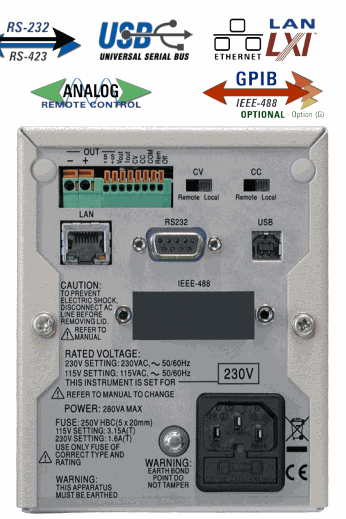 (LXI-C). All interfaces are at ground potential and opto-isolated from the output terminals.