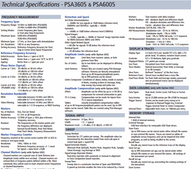 TTI PSA3605 RF Spectrum Analyzers (3.6Ghz) | EMIN.COM.MM