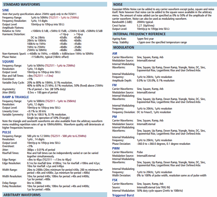 TTI TG5011 Programmable DDS function generator (50Mhz, USB/LAN) | EMIN.COM.MM