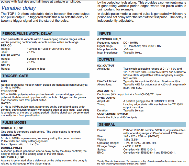 ● 50 output, variable 0.1V to 10V; TTL and sync outputs