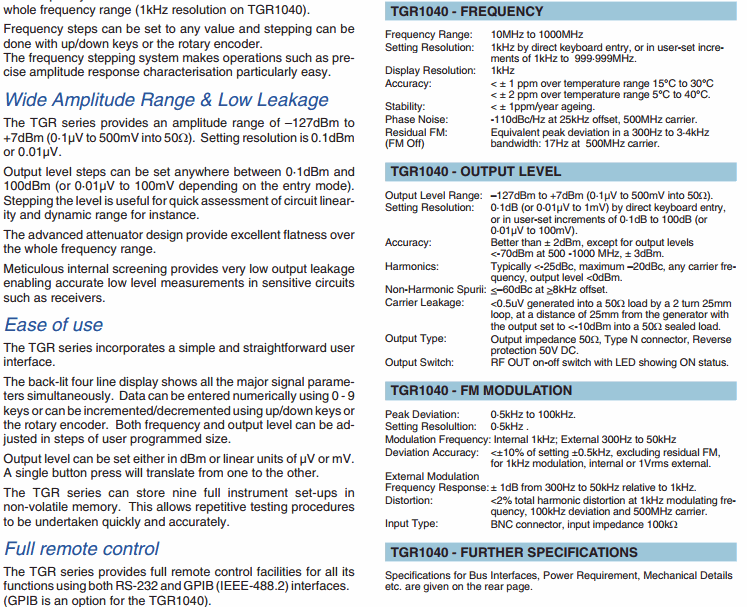 TTI TGR1040 synthesised RF signal generators (10MHz ~ 1000MHz) | EMIN.COM.MM