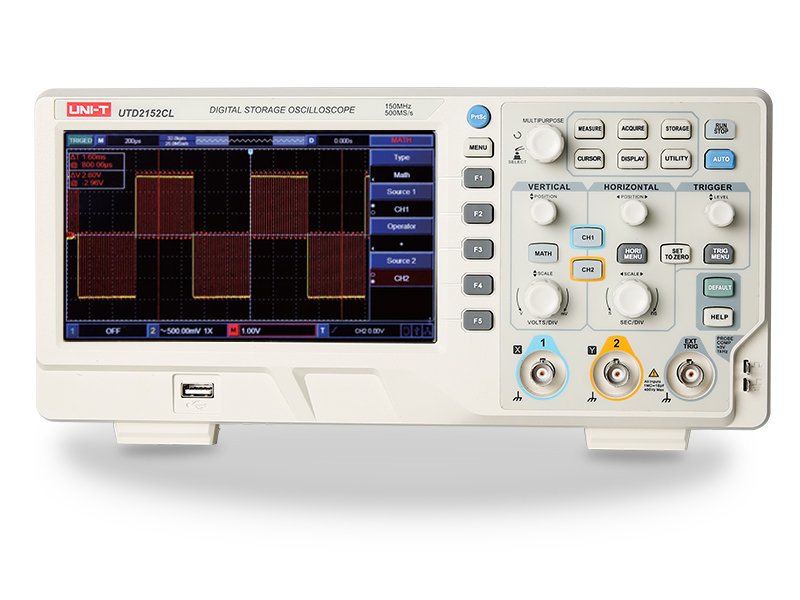 Auto measurements: Max, Min, High, Low, Ampl, Pk-Pk, Middle, Mean, CycMean, RMS, C ycRMS, Period, Freq, Rise, Fall, RiseDelay, FallDelay, +Width, -Width, +Duty, -Duty,(UTD2052/25CL)FRR, FRF, FFR, FFF, LRF, LRR, LFR, LFF, Area, CycArea, OverSht, PreSht, Phase, 34 parameters in total