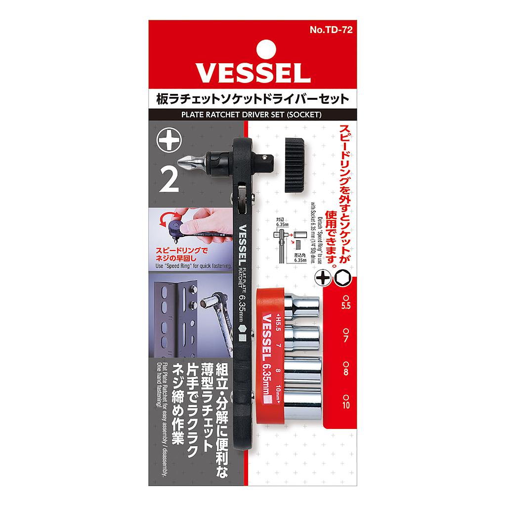 Vessel TD-72 Flat Plate Ratchet Screwdriver Set (+2, 4 sockets)