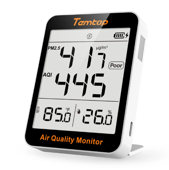 Another option is the Piezo sensor, which measures the change in crystal frequency as dust adheres to it. This method for measuring dust concentration is highly accurate, often used in professional monitors adhering to EPA standards. However, for residential use, laser scattering is more convenient due to its affordability and portability. The Temtop S1+ Air Quality Monitor utilizes a high-grade laser sensor combined with a powerful fan. This device measures PM2.5 from $0-999g/m3, AQI, temperature, and humidity in just one minute. With Bluetooth, you can view data remotely on an app, and a 3-color LED (green-yellow-red) clearly signals the status.