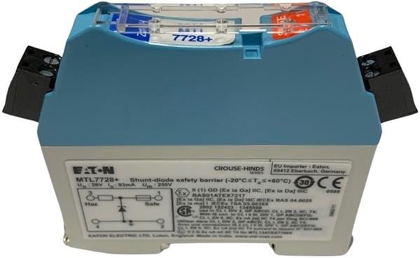 Amphenol Wilcoxon ISBS-STD-08 Barrier Terminal Blocks Required for dynamic, intrinsically safe sensors, compatible with 2 pin models, DIN rail mounting (93 mA); two units are required for dual-output sensors (786T-IS)