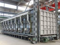 2.3. The frame of the trolley is welded by various large-scale I-beams, channel steels, angle steels and thick steel plates. The trolley transmission adopts the combination of electric motor and worm gear reducer to drive the front-end driving wheel transmission through the chain. The refractory masonry of the trolley adopts a high-alumina shaped brick structure, which has good sealing effect with the furnace body and high compressive strength. The trolley and the furnace body are sealed by soft contact, and a labyrinth sand sealing groove and a sand sealing knife sealing device are arranged at the lower part of the trolley.
