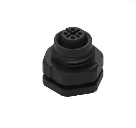 Wurth Elektronik 643120100404 Receptacles WRCIRC M12 Screw Coding A Panel Solder Bucket Plastic with Front Panel Nut M16 Female connector, polarity 4