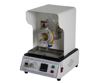 The resistance of a protective clothing material to penetration by a liquid under pressure is determined by subjecting the material to the liquid for a specified time and pressure sequence and observing if visible penetration of the liquid occurs.