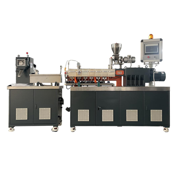 Laboratory parallel twin screw extruder, is applied to the miniaturization production, experiment and teaching of filling, blending, modification and reinforcement of polymer materials.