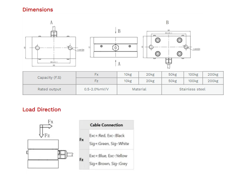 XJCSENSOR X-2A-L80-W40-H37 2 Axis Load Cell (10kg~200kg) | EMIN.COM.MM