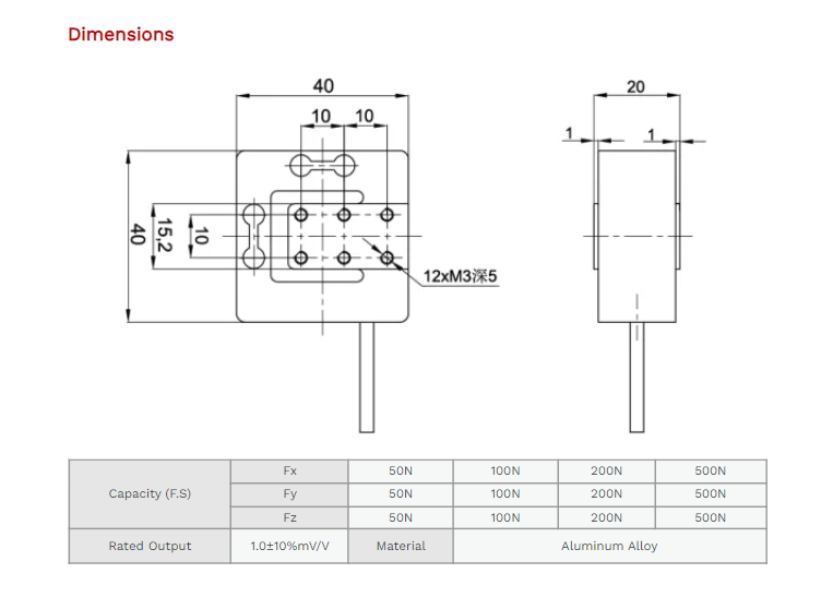 XJCSENSOR X-3A-F40 3 Axis Load Cell (50N~500N) | EMIN.COM.MM