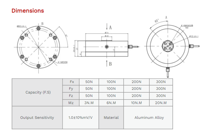 XJCSENSOR X-4A-D74-H28 4 Axis Force/Torque Sensor (50N) | EMIN.COM.MM