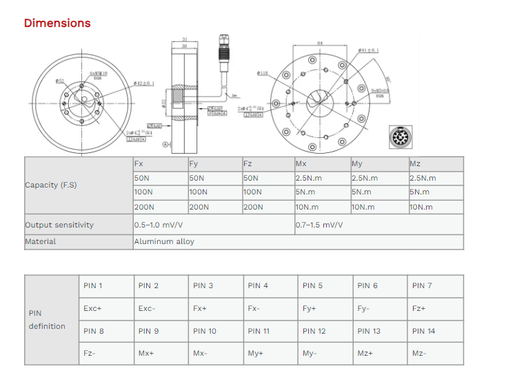 XJCSENSOR X-6A-D118-H31 6 Axis Force/Torque Sensor (50N~200N) | EMIN.COM.MM