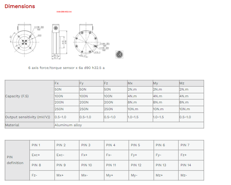 XJCSENSOR X-6A-D90-H32.5-A 6 Axis Force/Torque Sensor (50N~250N) | EMIN.COM.MM