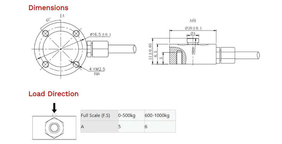 Cable Connection: Ex+: red; Ex-: black; Sig+: green; Sig-: white