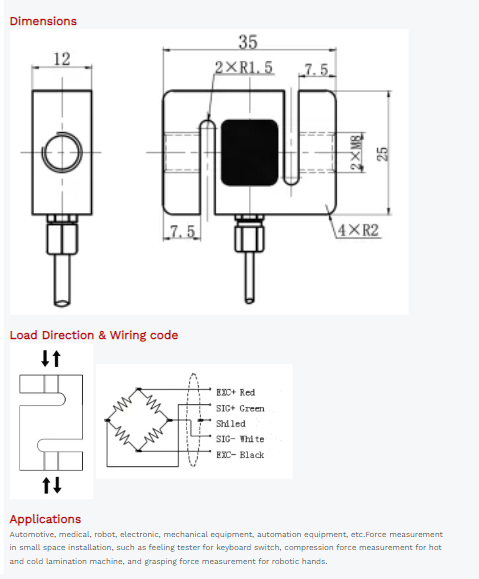 Cable Connection: Ex+: Red;Ex-: Black;Sig+: Green;Sig-: White