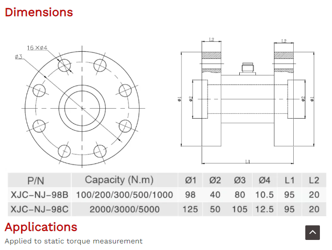 XJCSENSOR X-ST-98B Torque Load Cell (0-500N.m) | EMIN.COM.MM